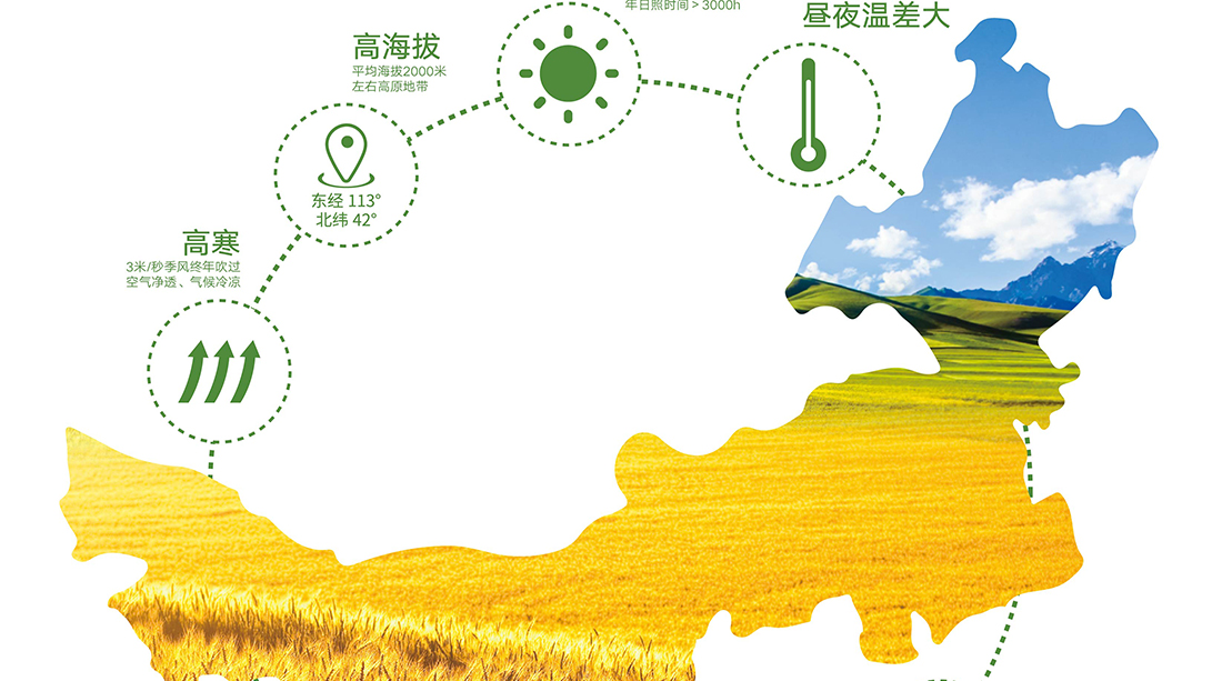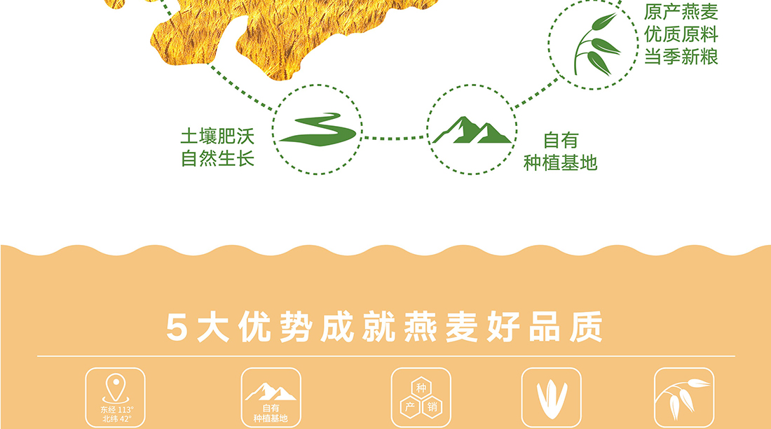 內(nèi)蒙古,世界裸燕麥起源地之一;陰山源生燕麥在初出生滿足生長規(guī)律一切所需,高寒、高海拔、日照充足;遵循自然法則,靠天滋養(yǎng),自然生長;